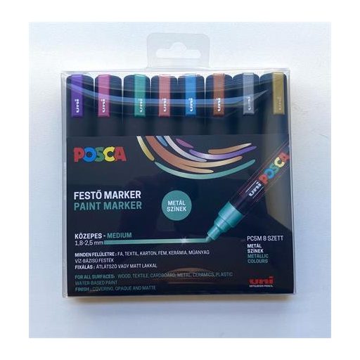 Dekormarker készlet, 1,8-2,5 mm, UNI "Posca PC-5M", 8 különböző metál szín