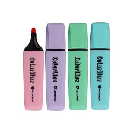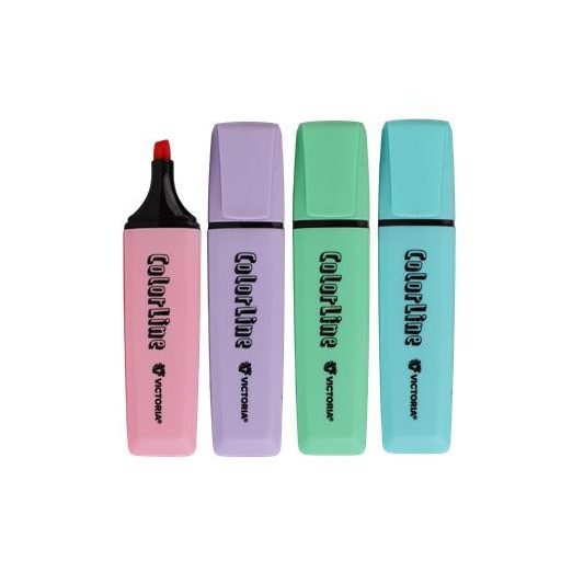 Szövegkiemelő készlet, 1-5 mm, VICTORIA OFFICE, "ColorLine", 4 különböző pasztell szín