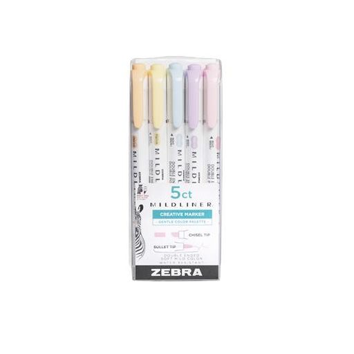 Szövegkiemelő készlet, 1,4/4 mm, kétvégű, ZEBRA "Mildliner Highlighter Gentle", 5 különböző szín