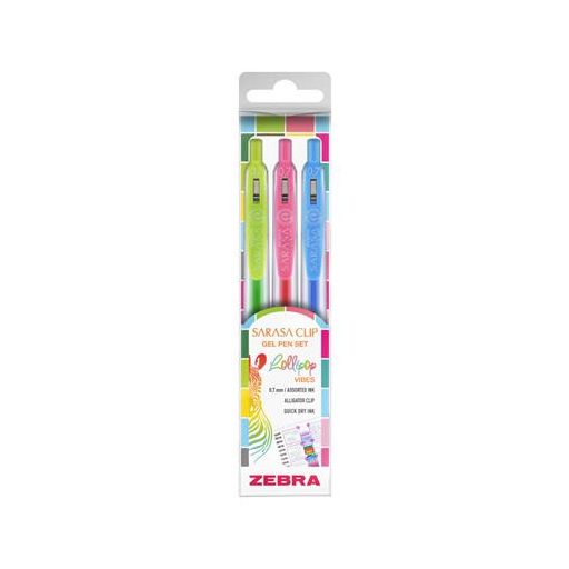 Zseléstoll készlet, 0,33 mm, nyomógombos, ZEBRA "Sarasa Clip Lollipop", 3 különböző szín