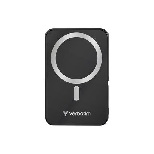 Power bank, külső akkumulátor, mágneses (vezeték nélküli), 10.000mAh, kitámasztó, VERBATIM "Charge n Go", fekete